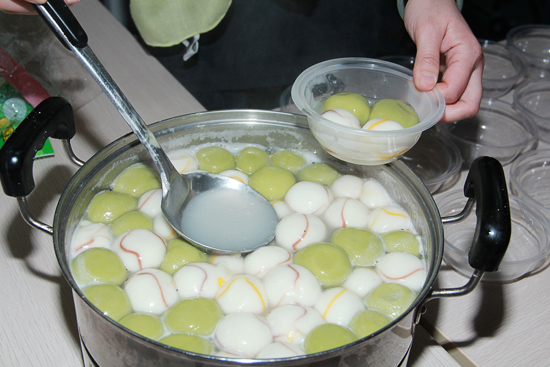 來一鍋傳統的白花花的上元丸,再來一鍋帶著綠意和條紋的創新丸!看來在支持口味創新上,大家都很任性嘛!