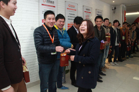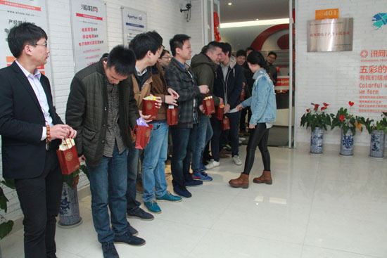 名義上是要給訊網科技的妹子們過“三八婦女節”,不過大家更愿意提前一天過“三七妹子節”(當然是妹子比婦女聽起來更年輕一些~~~)。為了讓廣大妹子們過個舒心的節日,親愛的行政主管美玲姐姐可是操碎了心,上周五下午下班前就神秘兮兮地通知大家,今早上貼心禮物。果然,周六早上剛跨進辦公室,一份份誘人的早餐已經擺上桌了,豆奶、小蛋糕還不夠,連球球最愛的果凍都有~~~