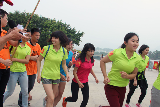 訊網(wǎng)科技積極響應(yīng)總工會(huì)的號(hào)召,林文琛、劉俊杰、楊俊美及王燕馀四位職員代表公司參加比賽。現(xiàn)場(chǎng)參賽人員近百名,盡管烈日炎炎,參賽選手卻是熱情高漲,早已在候賽區(qū)躍躍欲試。隨著裁判手中小紅旗的揮動(dòng),一聲令下,參賽隊(duì)伍便浩浩蕩蕩地向前沖。訊網(wǎng)科技的職員們表現(xiàn)出“頑強(qiáng)拼搏,勇往直前”的精神風(fēng)貌,公司的啦啦隊(duì)也為他們助威加油,比賽場(chǎng)面分外的熱鬧。