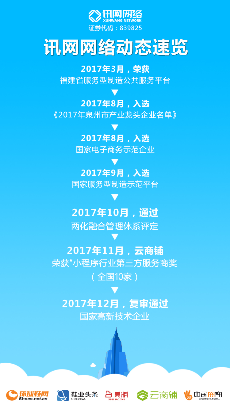 知識呈現品牌力,科技彰顯新實力,訊網網絡近年來在技術創新和產業服務方面取得的突出成就,也得到了諸多認可?;厥?/span>2017年,公司連續獲得國家電子商務示范企業和國家服務型制造示范平臺稱號。此次又獲得國家級高新技術企業的評定,是政府各職能部門對訊網網絡在科技研發工作中所取得成績的肯定與鼓勵,同時也是對訊網網絡提出了更高的創新要求。