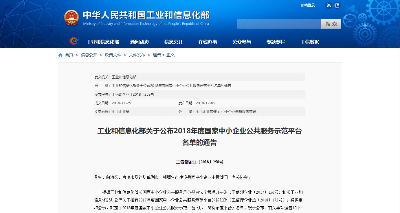 重磅丨訊網榮獲2018年度“國家中小企業公共服務示范平臺”