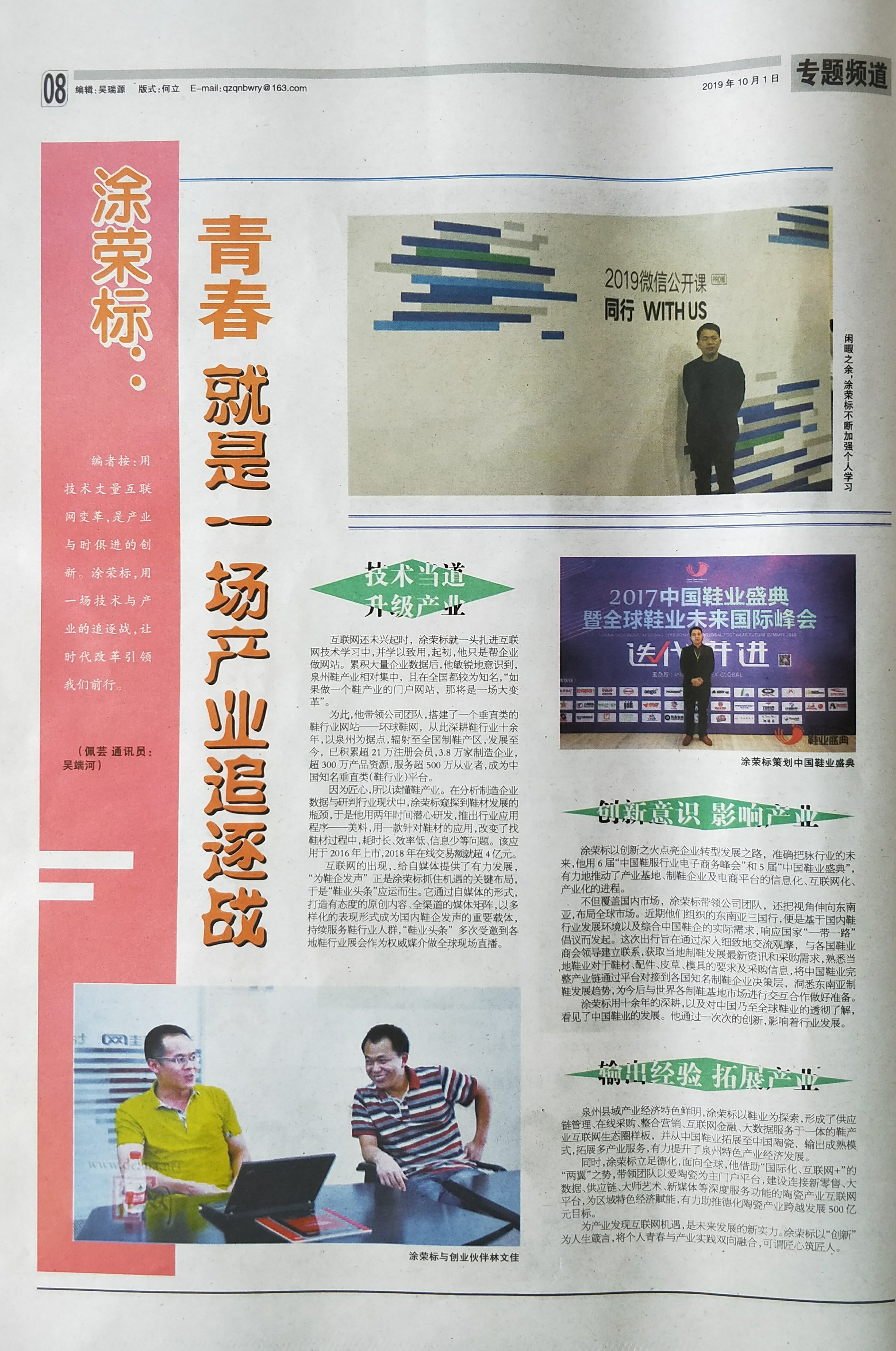 互聯網還未興起時,涂榮標就一頭扎進互聯網技術學習中,并學以致用,起初,他只是幫企業做網站。累積大量企業數據后,他敏銳地意識到,泉州鞋產業相對集中,且在全國都較為知名,“如果做一個鞋產業的門戶網站,那將是一場大變革”。